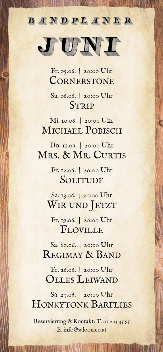 RESERVIERUNGEN UNTER +43(0)1 203 45 95 | info@saloon.co.at oder office@saloon.co.at